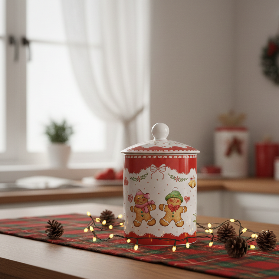 Conserva i tuoi dolcetti natalizi in stile con questo affascinante barattolo in porcellana della collezione Sweet Christmas di Easy Life. Perfetto per decorare la cucina durante le festività, combina funzionalità e charm con il suo coperchio ben aderente. Le dimensioni generose (diametro 11,5 cm, altezza 18 cm) lo rendono ideale per biscotti, caramelle e piccoli tesori culinari. Arriva in una elegante gift box, pronto per sorprendere chi ama gli accessori natalizi raffinati e pieni di personalità.