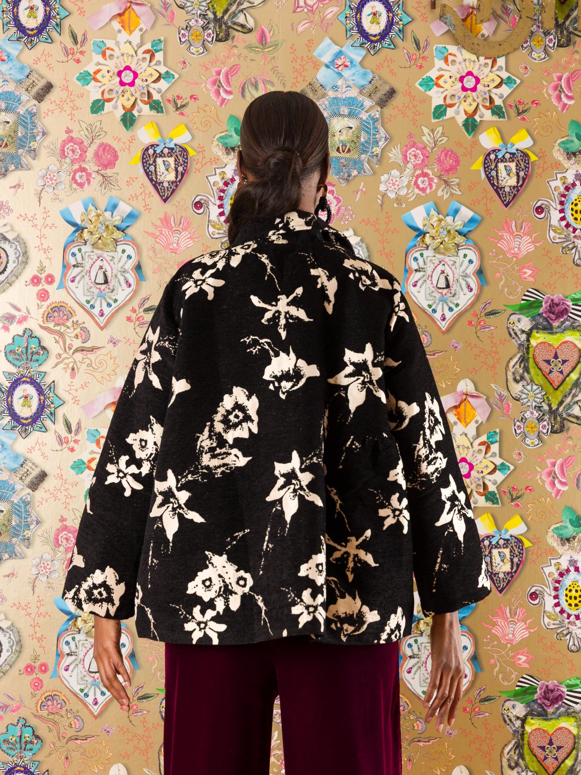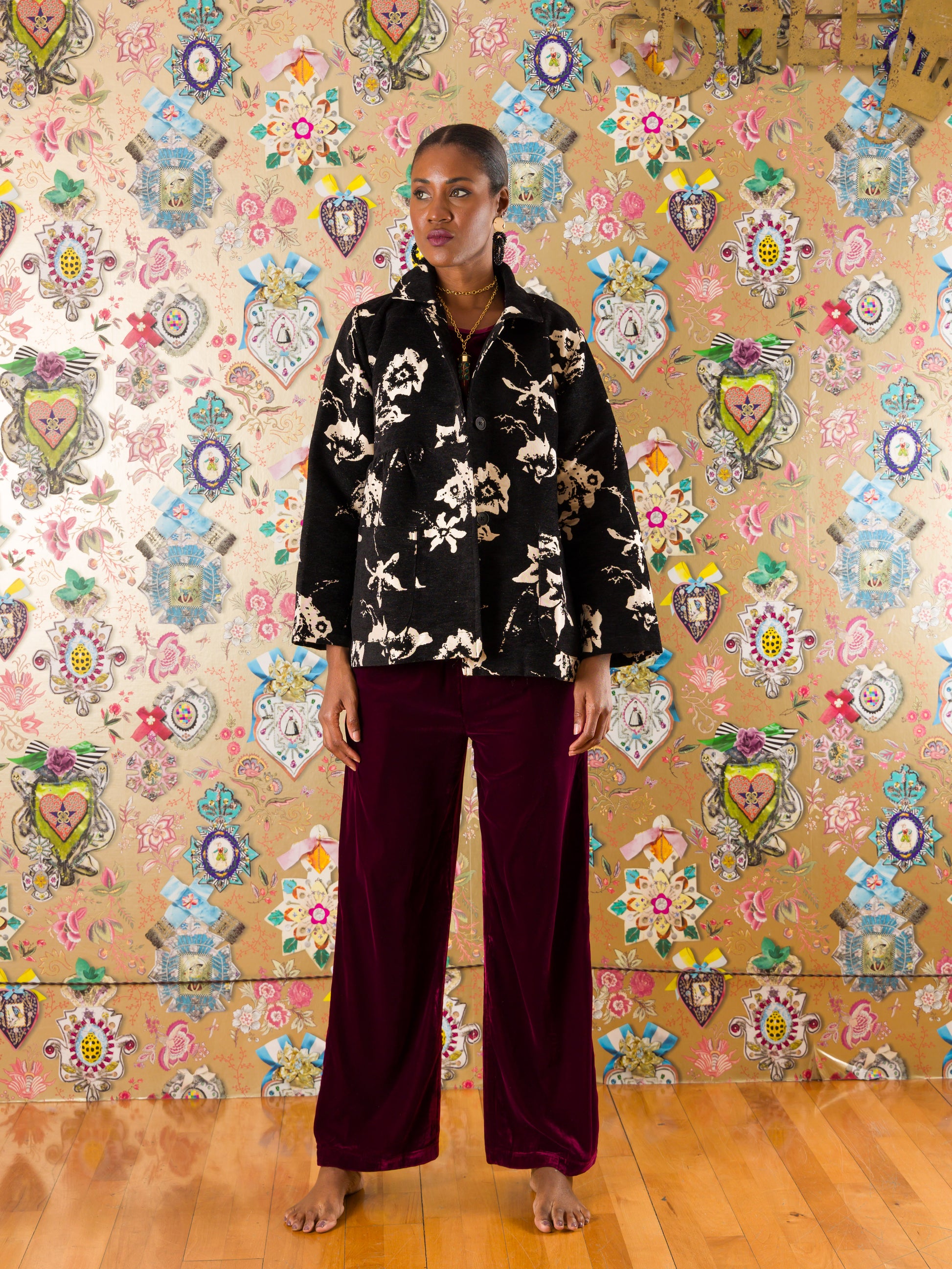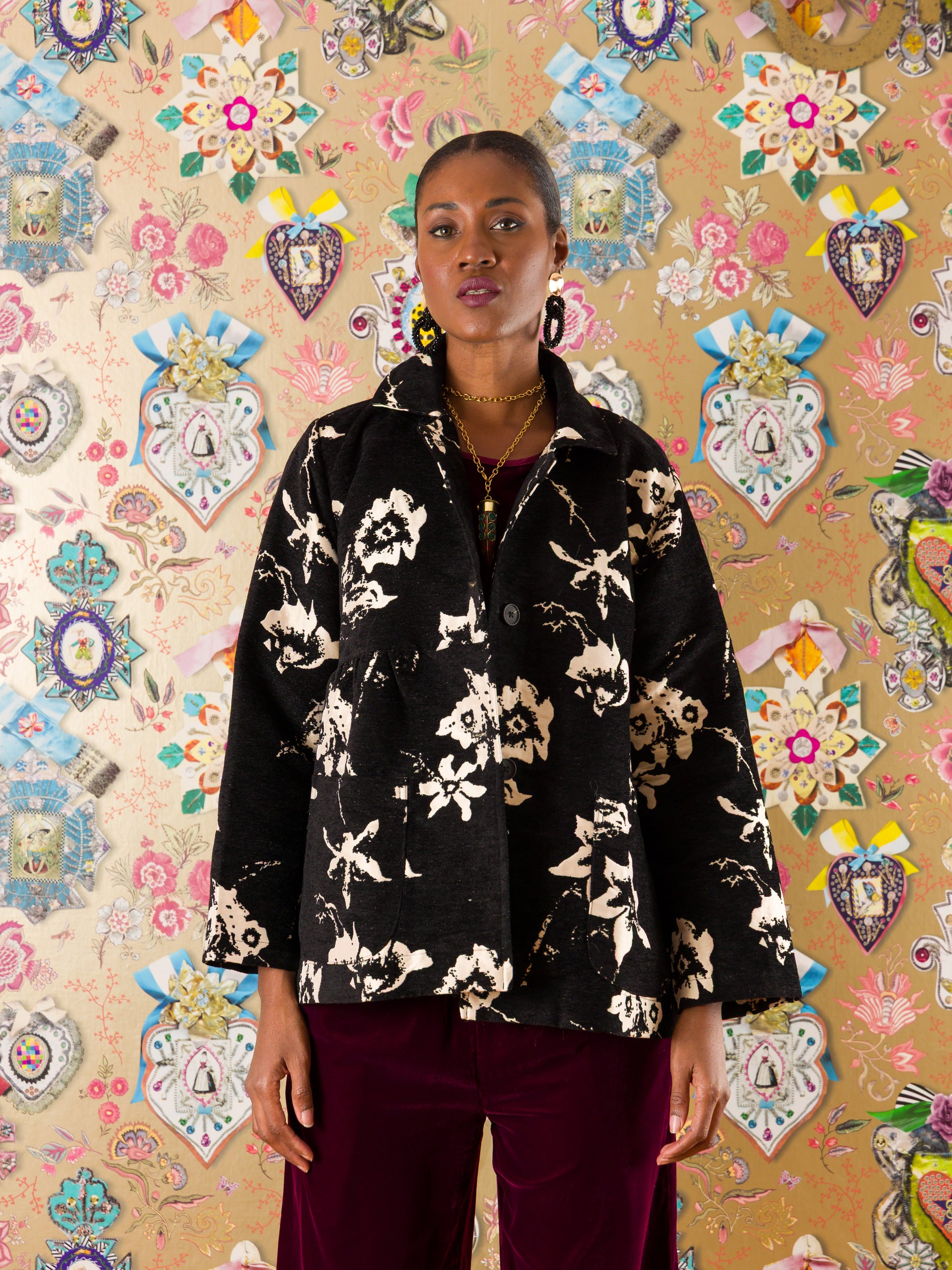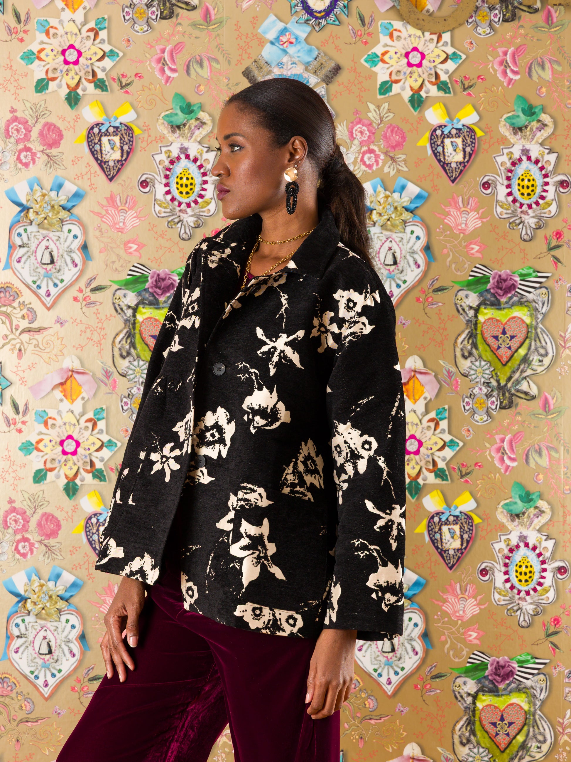 La Giacca Saragozza in velluto di seta è il tuo nuovo alleato di stile! Avvolgiti nel lusso di un tessuto morbidissimo che accarezza la pelle, impreziosito da una fantastica fantasia floreale. La silhouette ampia regala libertà di movimento e comfort senza compromessi, mentre la leggera imbottitura aggiunge calore senza ingombrare. Un capo che sussurra eleganza e ti fa sentire straordinaria, perfetto per chi ama fare scena con naturalezza!