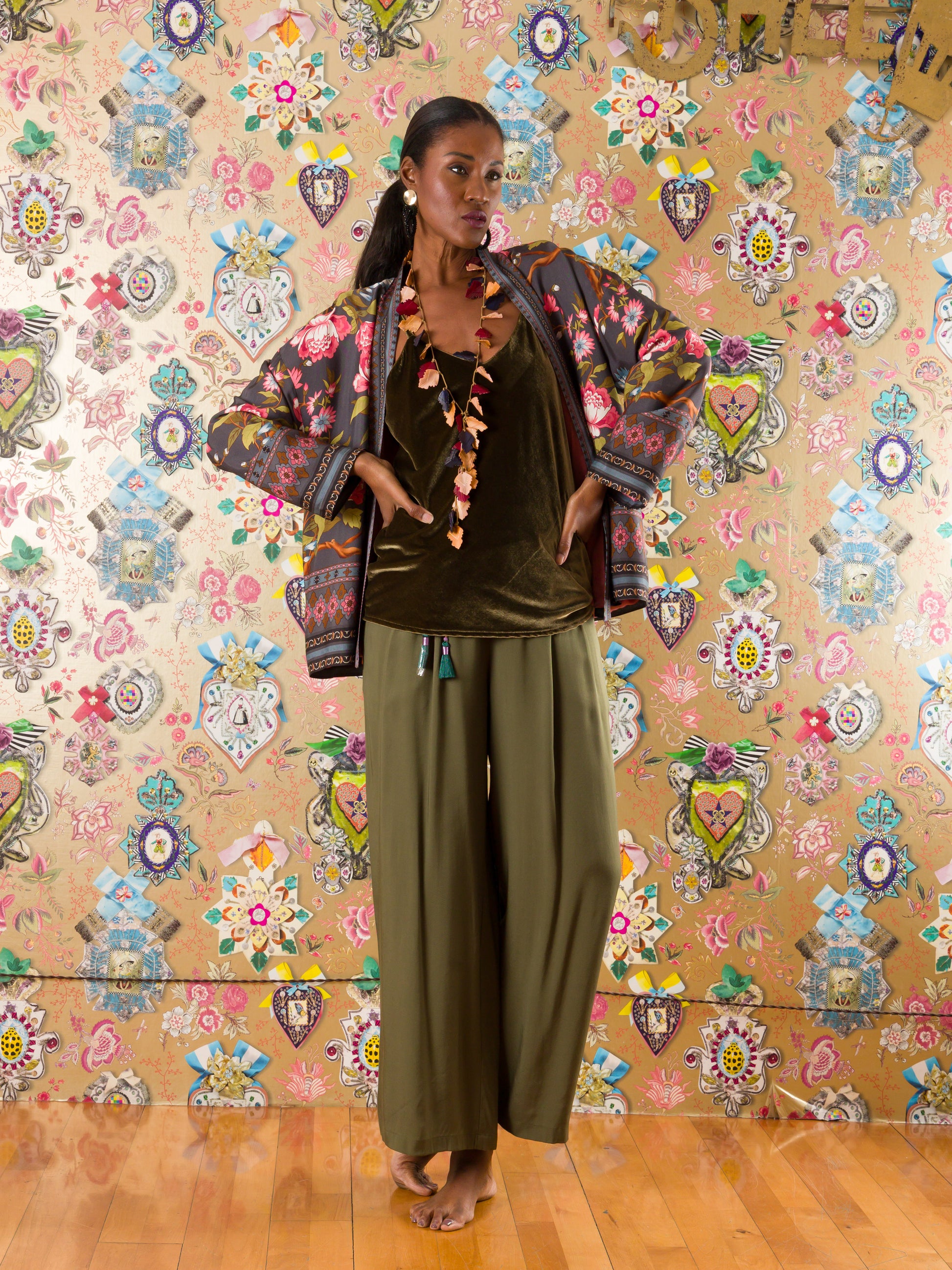 I pantaloni Palazzo Vivario in morbida viscosa donano un tocco di leggerezza al tuo guardaroba. La cintura in vita aggiunge un dettaglio chic e ti permette di segnare la silhouette con stile, mentre la vestibilità ampia garantisce comfort e libertà di movimento. Perfetti per giocare con outfit dal sapore elegante ma rilassato!