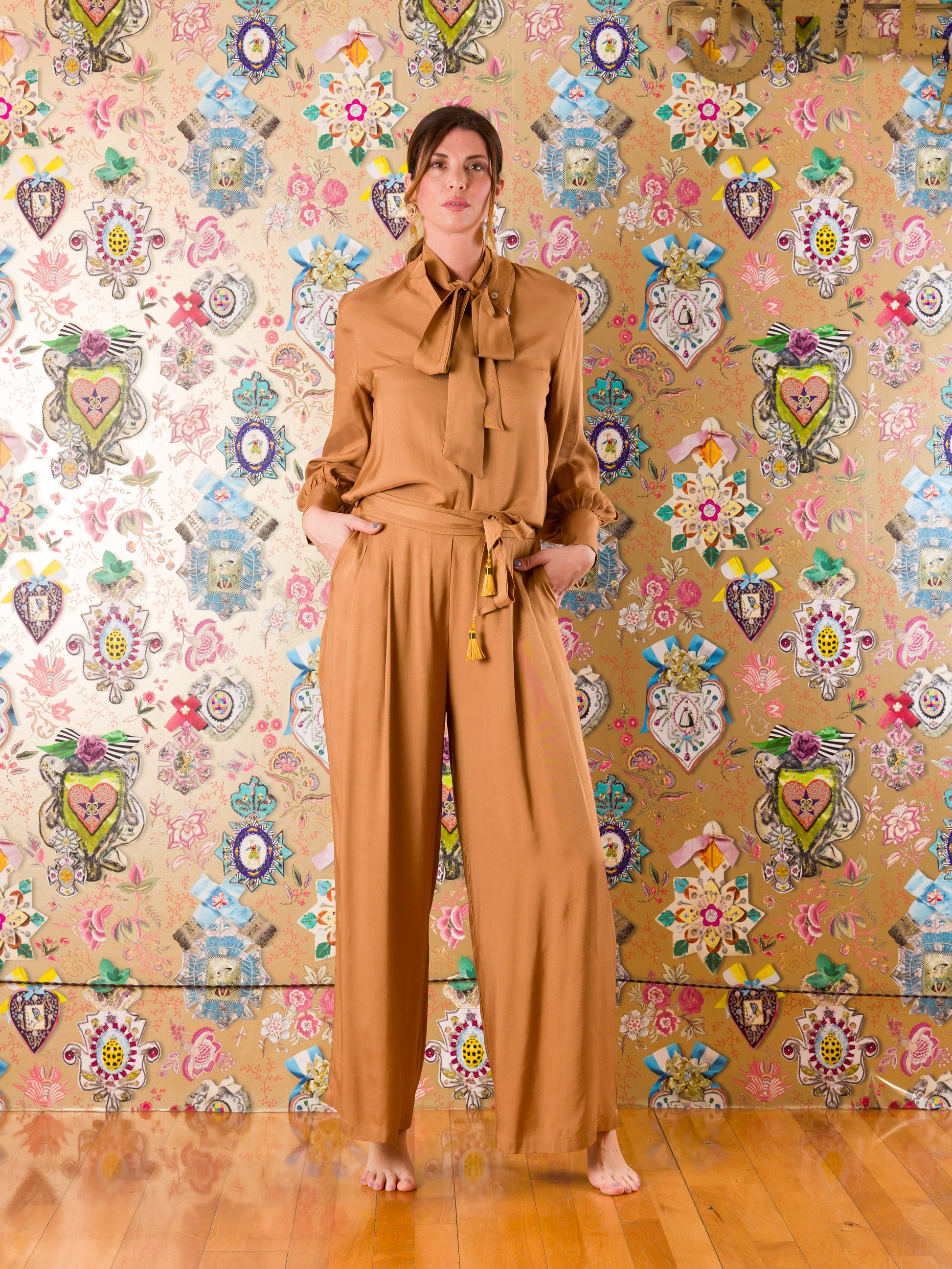 I pantaloni Palazzo Vivario in morbida viscosa donano un tocco di leggerezza al tuo guardaroba. La cintura in vita aggiunge un dettaglio chic e ti permette di segnare la silhouette con stile, mentre la vestibilità ampia garantisce comfort e libertà di movimento. Perfetti per giocare con outfit dal sapore elegante ma rilassato!