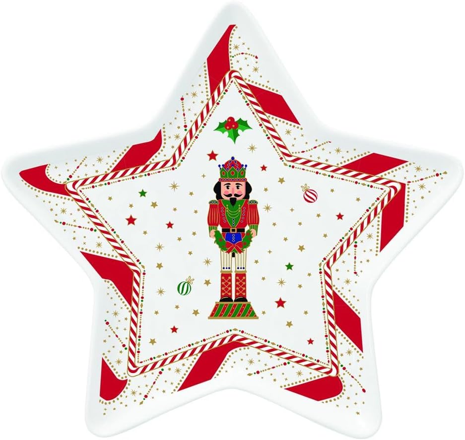Piatto a Stella in porcellana dalla collezione Nutcracker Twist di Easy Life – un tocco di magia sulla tua tavola! Con la sua forma affascinante a stella e i 19,5cm di diametro, è perfetto per servire dolcetti, snack o semplicemente per aggiungere un pizzico di fantasia alla mise en place. Realizzato in pregiata porcellana, combina eleganza e giocosità. Arriva in una bellissima gift box, pronto per sorprendere chi ami. Un dettaglio che trasforma ogni momento in festa!