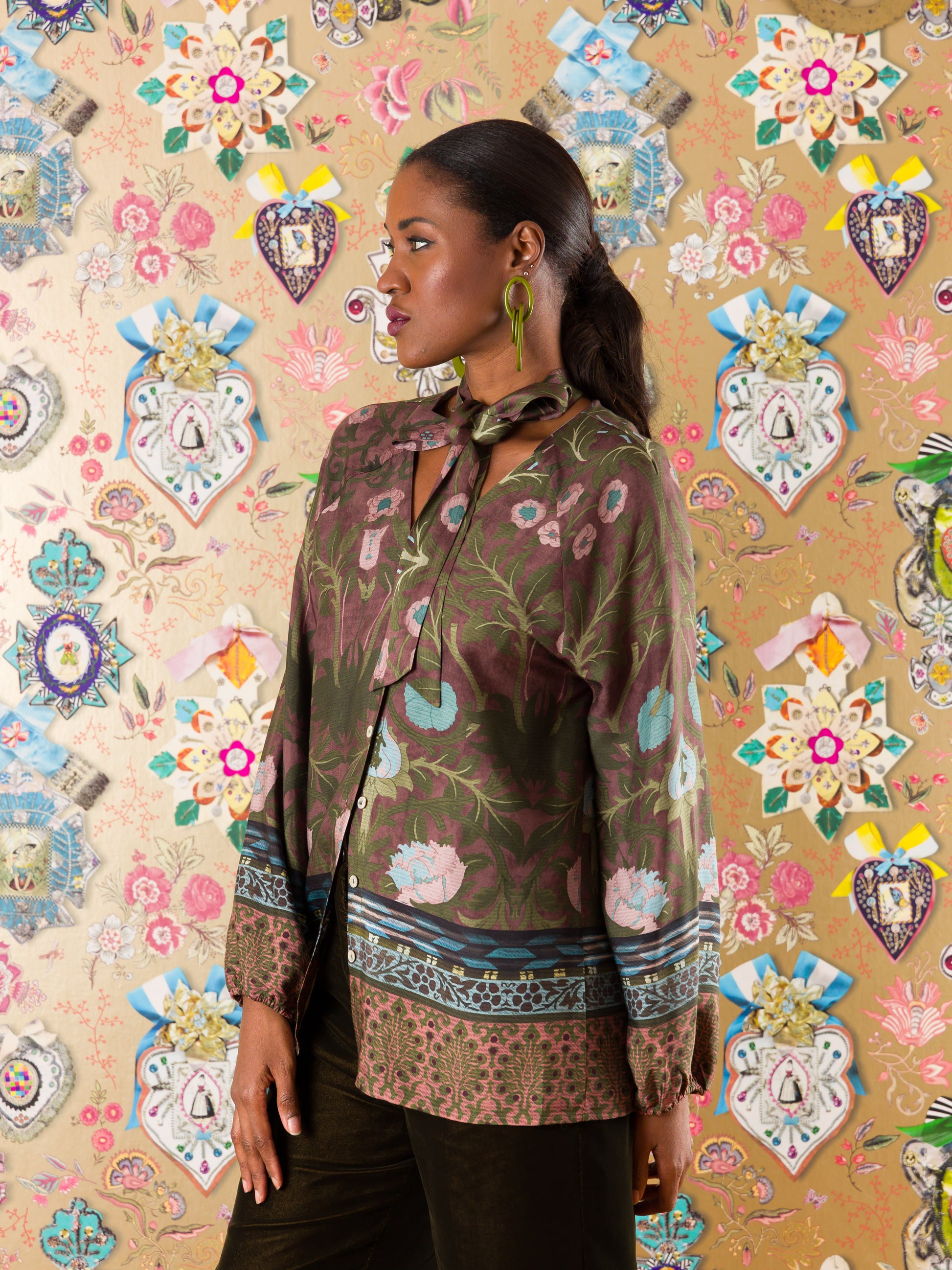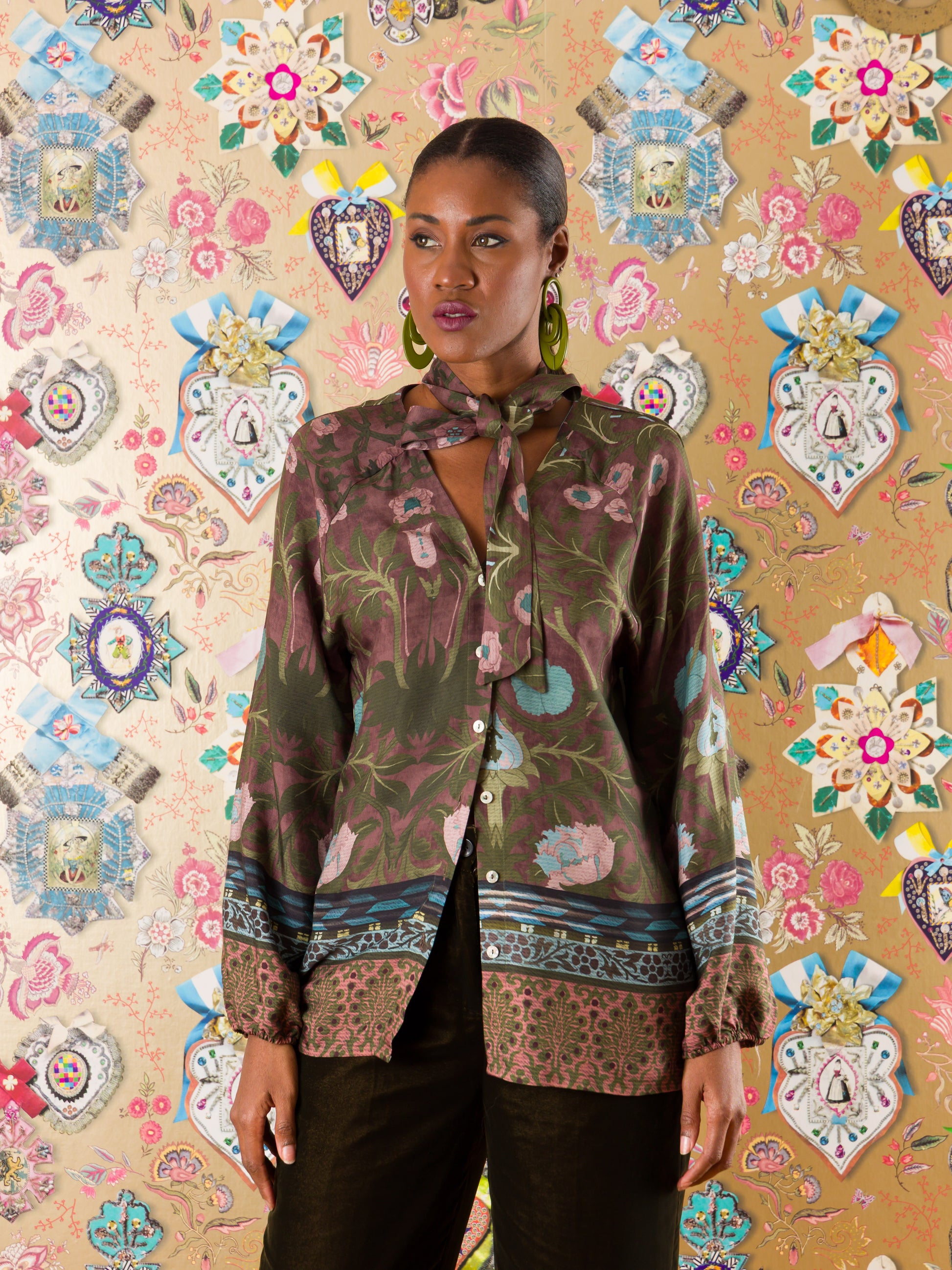 Questa camicia Mentone in morbida viscosa con fantasia floreale porta un tocco di allegria al tuo guardaroba. Il suo scollo a V arricchito da un fiocco sul collo aggiunge un dettaglio giocoso e femminile, perfetto per chi ama distinguersi con stile leggero e spensierato. Ideale per giornate primaverili o estive, combina comfort e charme in un unico capo.