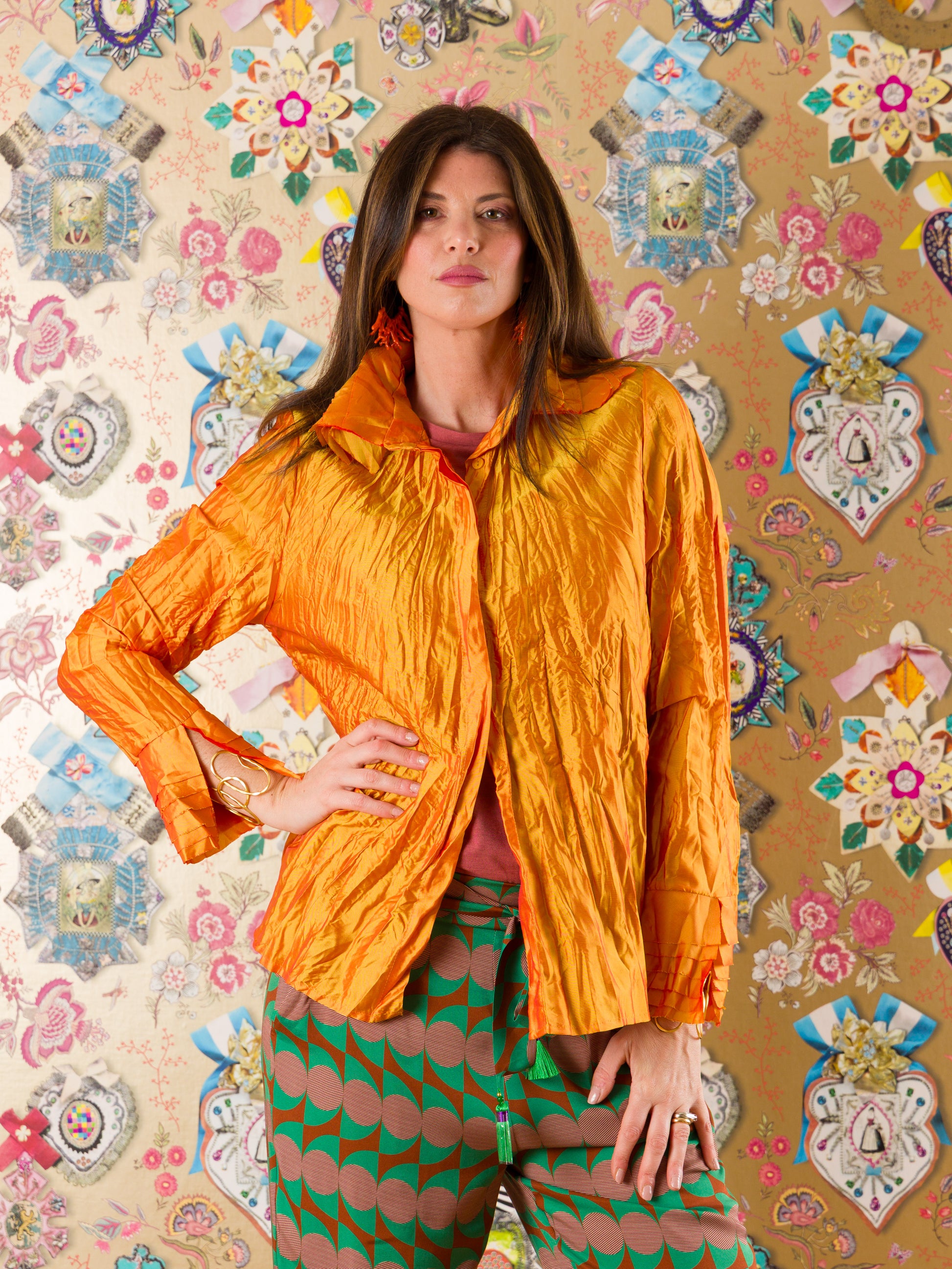 Camicia in taffetà di viscosa con affascinante effetto stropicciato. Il taglio dritto e l'abbottonatura classica sul davanti garantiscono eleganza senza compromessi. Dettagli sofisticati caratterizzano il colletto e i polsini, arricchiti da leggeri pannelli di tessuto che creano giochi di volume e permettono interpretazioni di styling versatili. Un capo pensato per chi ricerca raffinatezza e ricerca nel proprio guardaroba. Disponibile in due vestibilità: II (44/46) e III (48/50).