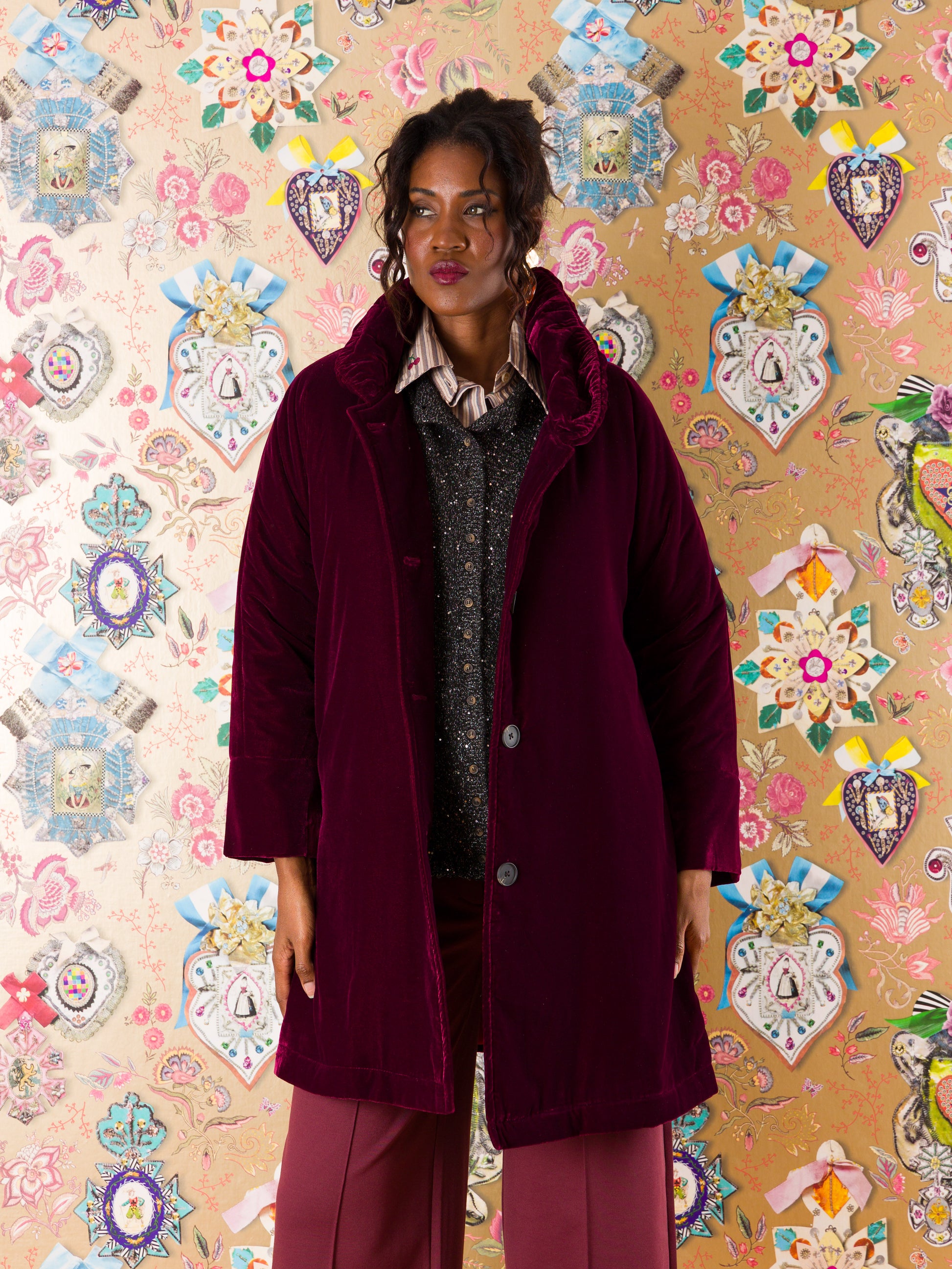 Scopri il nostro Cappotto Pamplona, un capolavoro di eleganza e comfort! Realizzato in morbidissimo velluto di seta a tinta unita, questo cappotto imbottito è il tuo nuovo alleato per affrontare le giornate più fredde con stile. La texture lussuosa accarezza la pelle, mentre l'imbottitura garantisce il calore che meriti senza rinunciare alla leggerezza. Perfetto per chi vuole brillare con un tocco di sofisticatezza, trasformando ogni uscita in una piccola sfilata personale. Un must-have che non passa inosservato!