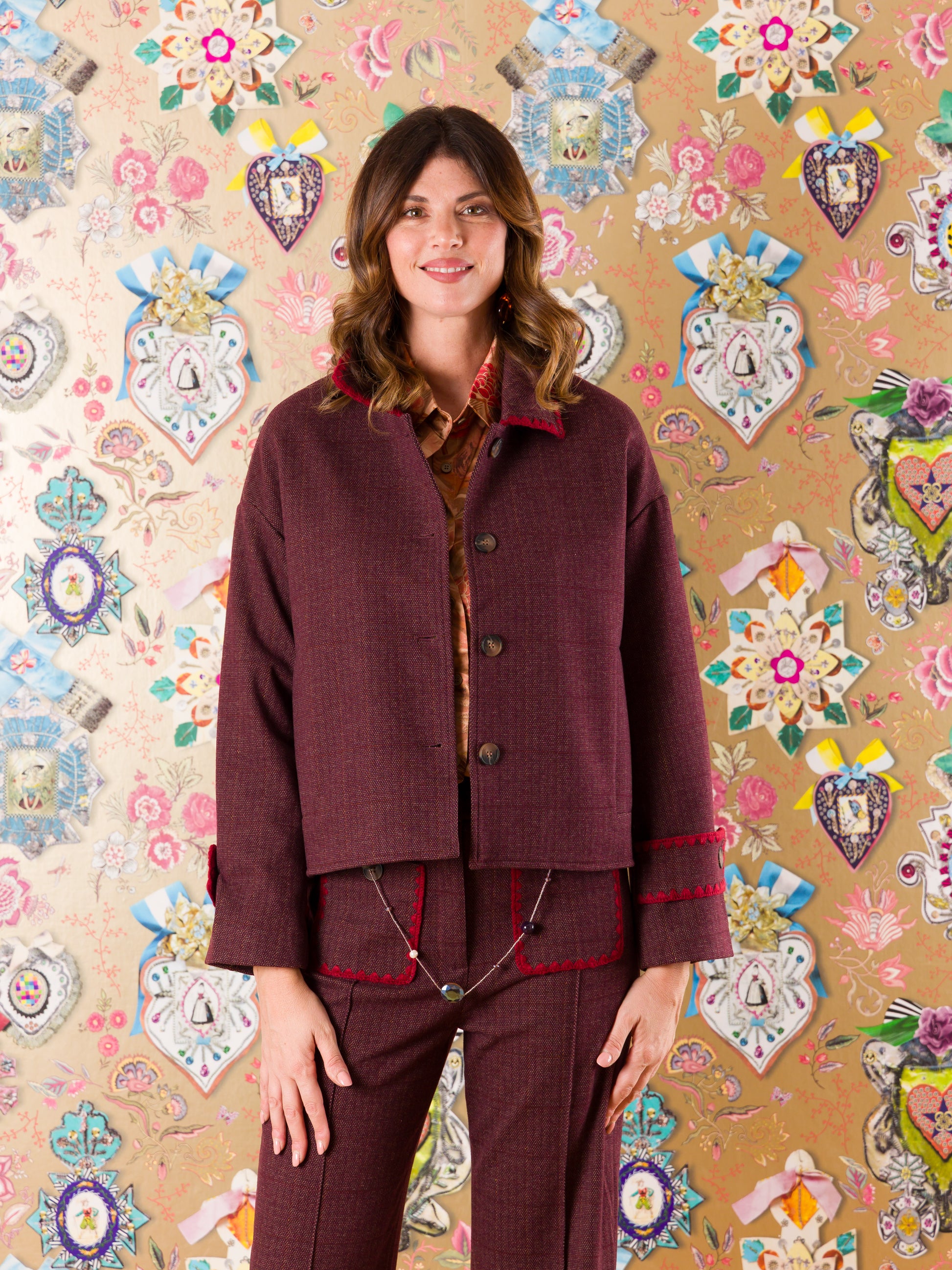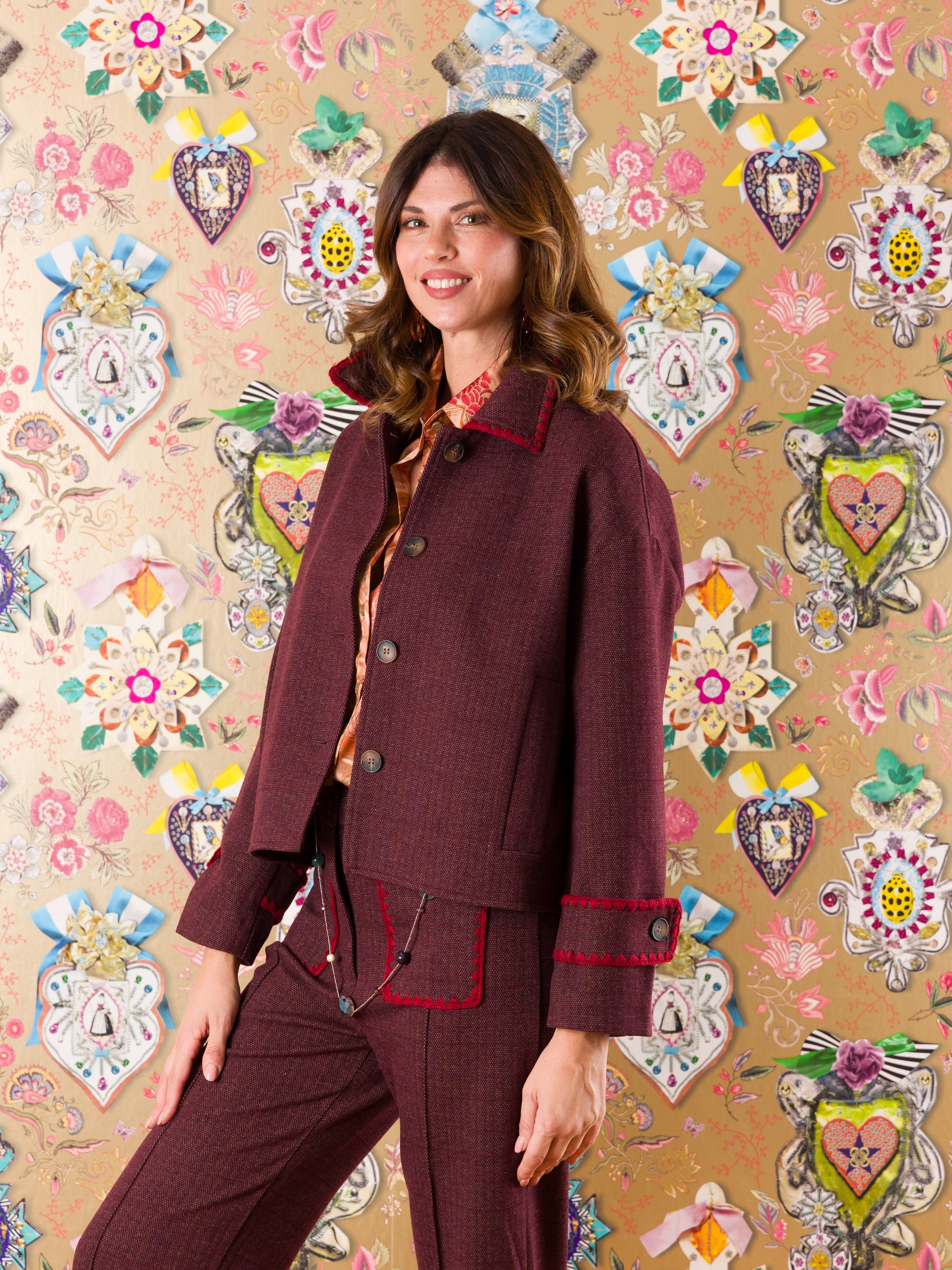 La Giacca Burgos è il tuo nuovo segreto di stile! Colletto strutturato e dettagli ricamati in rosso che brillano di personalità, con un taglio dritto e una lunghezza accorciata che crea proporzioni moderne e affascinanti. Che tu la indossi per un'uscita casual o per un evento più sofisticato, questa giacca sa sempre come sorprendere e conquistare. Il tuo guardaroba ti ringrazierà!