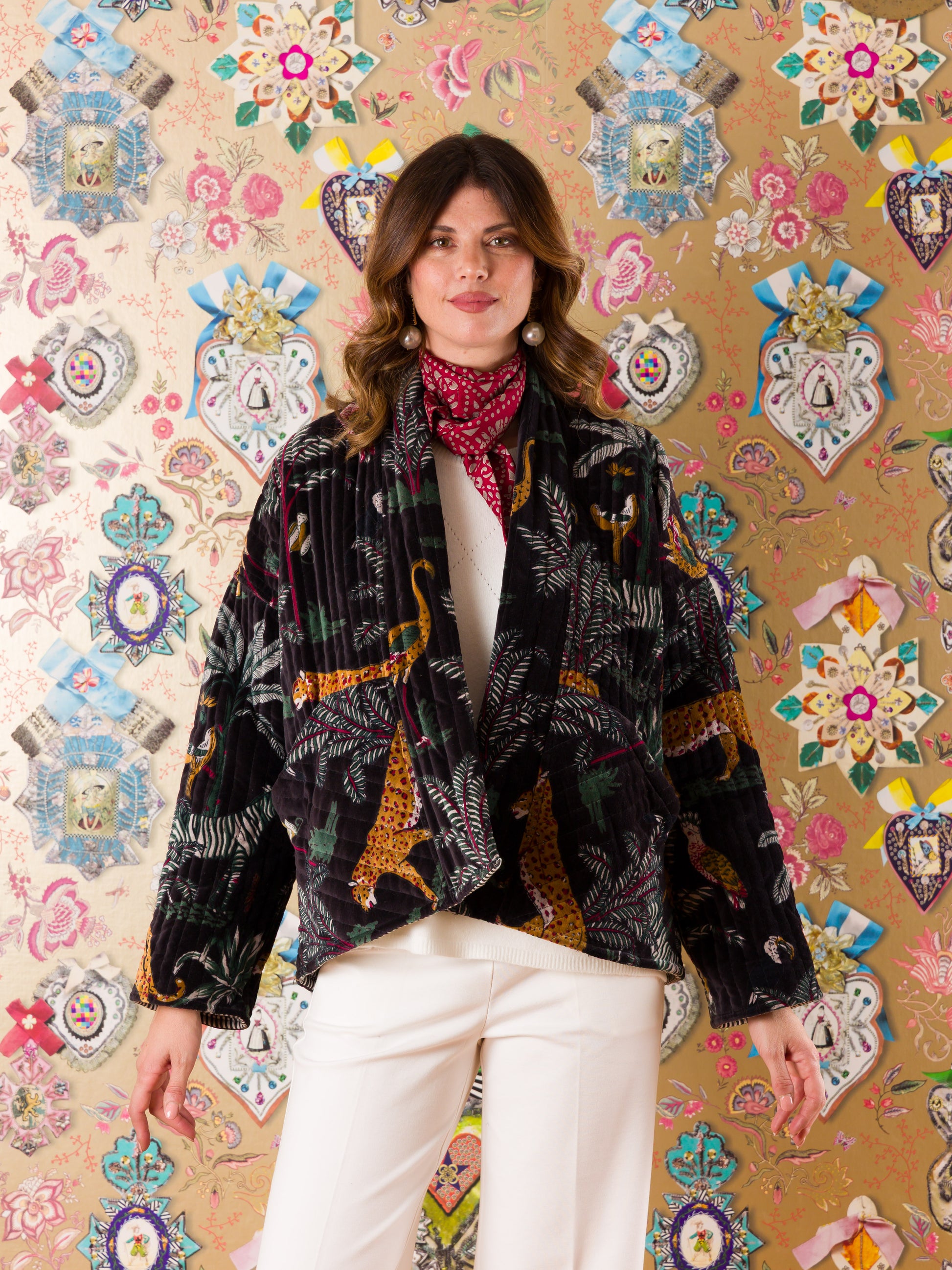 La Giacca Rouen è un kimono leggermente imbottito con una fantasia di animali africani che porta allegria e originalità al tuo look. Taglia unica, veste comodamente fino a una 48, offrendo un abbraccio caldo e sicuro con un pizzico di spirito selvaggio. Perfetta per chi ama un tocco giocoso senza rinunciare al comfort!