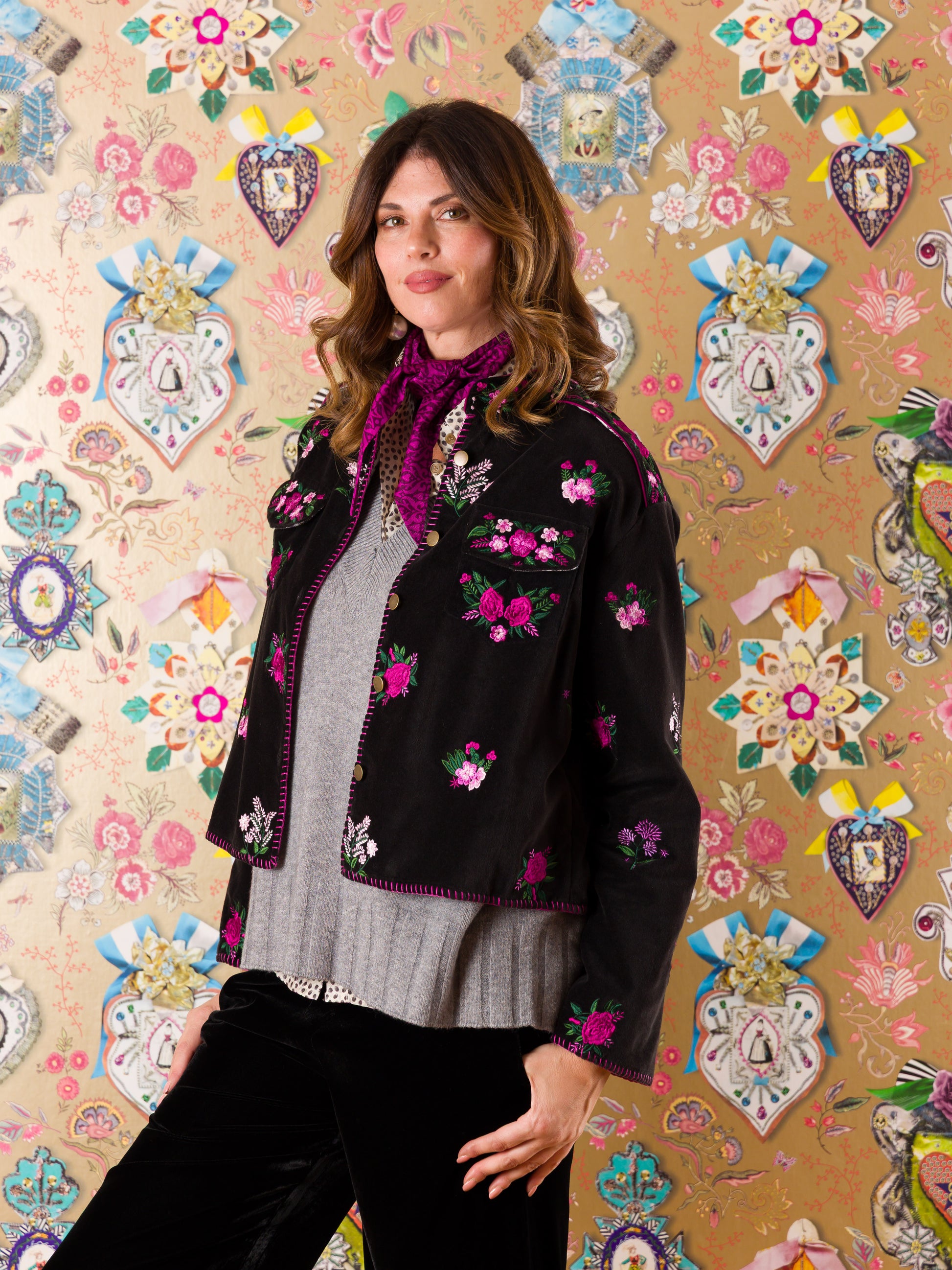 Scopri la Giacca Strasburgo, in cotone leggero arricchita da ricami floreali che sbocciano ovunque. La pistagna definisce la linea, trasformando un semplice capo in un concentrato di allegria e stile spensierato, perfetto per brillare in ogni occasione!