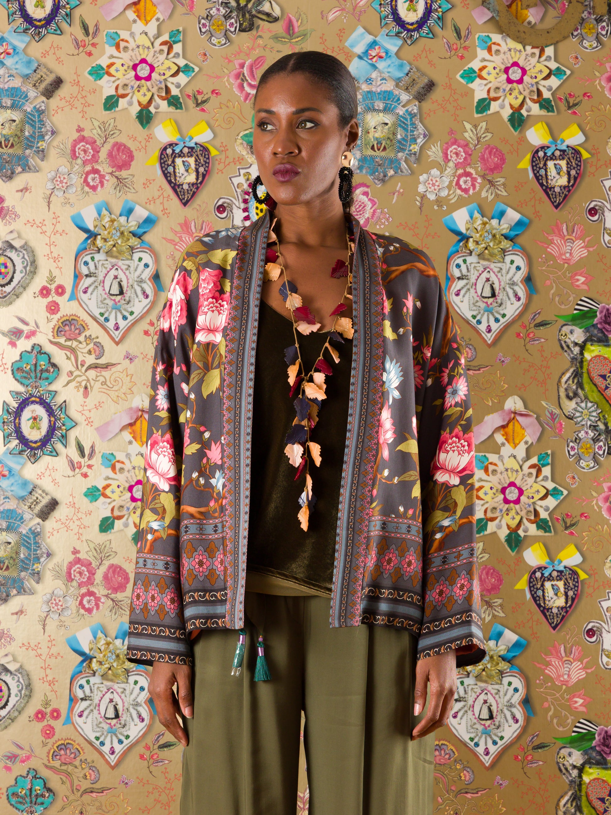 Scopri il fascino unico del Kimono Cannes, un capo leggero e vivace grazie alla sua fantasia floreale che porta un tocco di allegria e colore ovunque tu vada. La fodera tinta unita a contrasto aggiunge un dettaglio sorprendente, rendendolo perfetto per chi ama distinguersi con stile giocoso e raffinato. Un vero must-have per le giornate in cui vuoi sentirti libera e speciale!