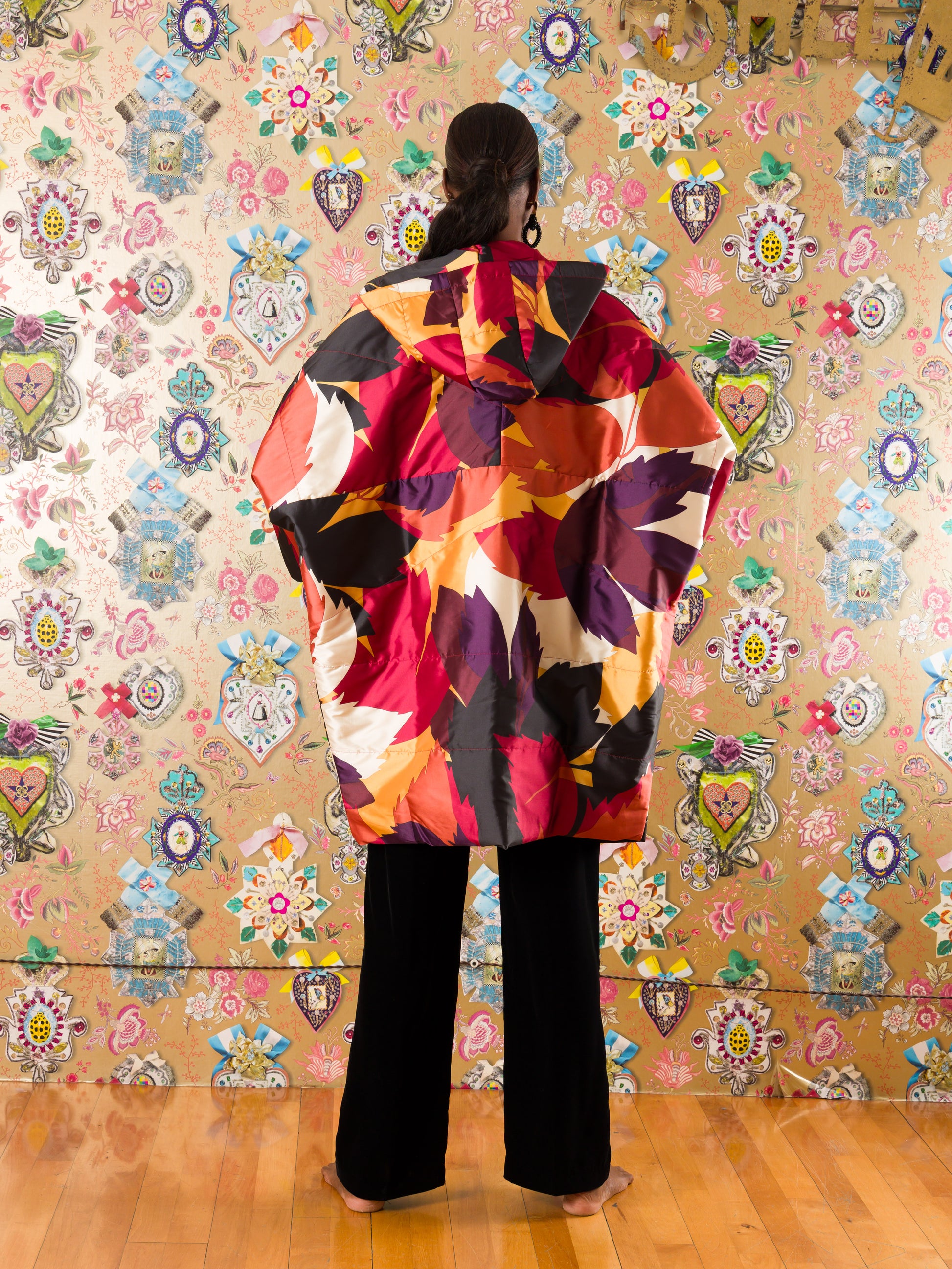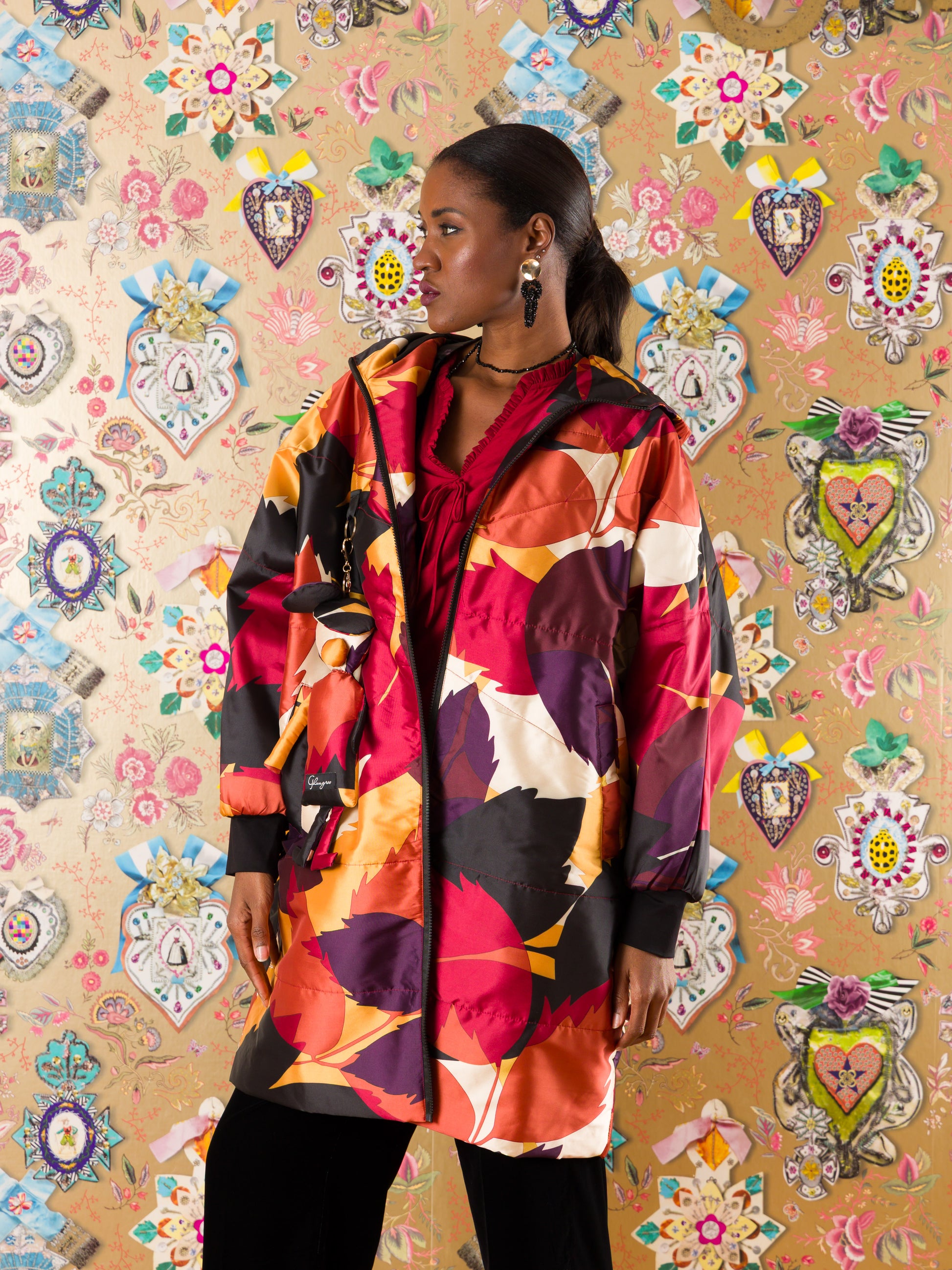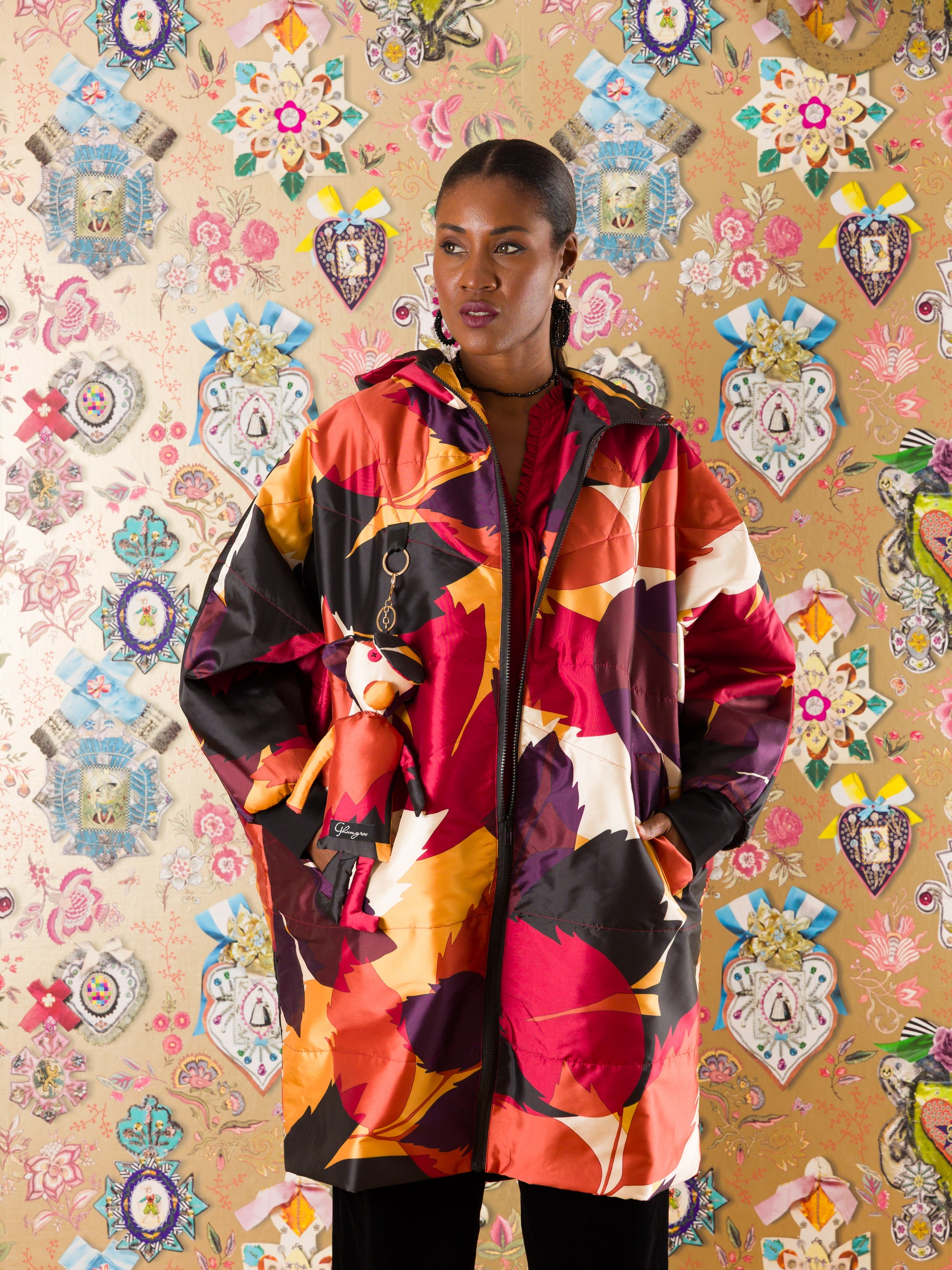Scopri il piumino Amiens in taffetà di viscosa, leggero e naturalmente brillante grazie alla sua stampa a foglie. Con imbottitura soft e trapuntatura elegante, ti protegge dal freddo senza rinunciare allo stile. Il cappuccio e i polsini in jersey offrono comfort, mentre le tasche a filetto sono perfette per le tue mani o piccoli oggetti. Il tocco divertente? Un orsetto giocoso appendibile con moschettone e catenella, staccabile per personalizzare il look. Vestibilità comoda fino alla 48/50 e lunghezza di 95 cm per una silhouette slanciata e allegra!