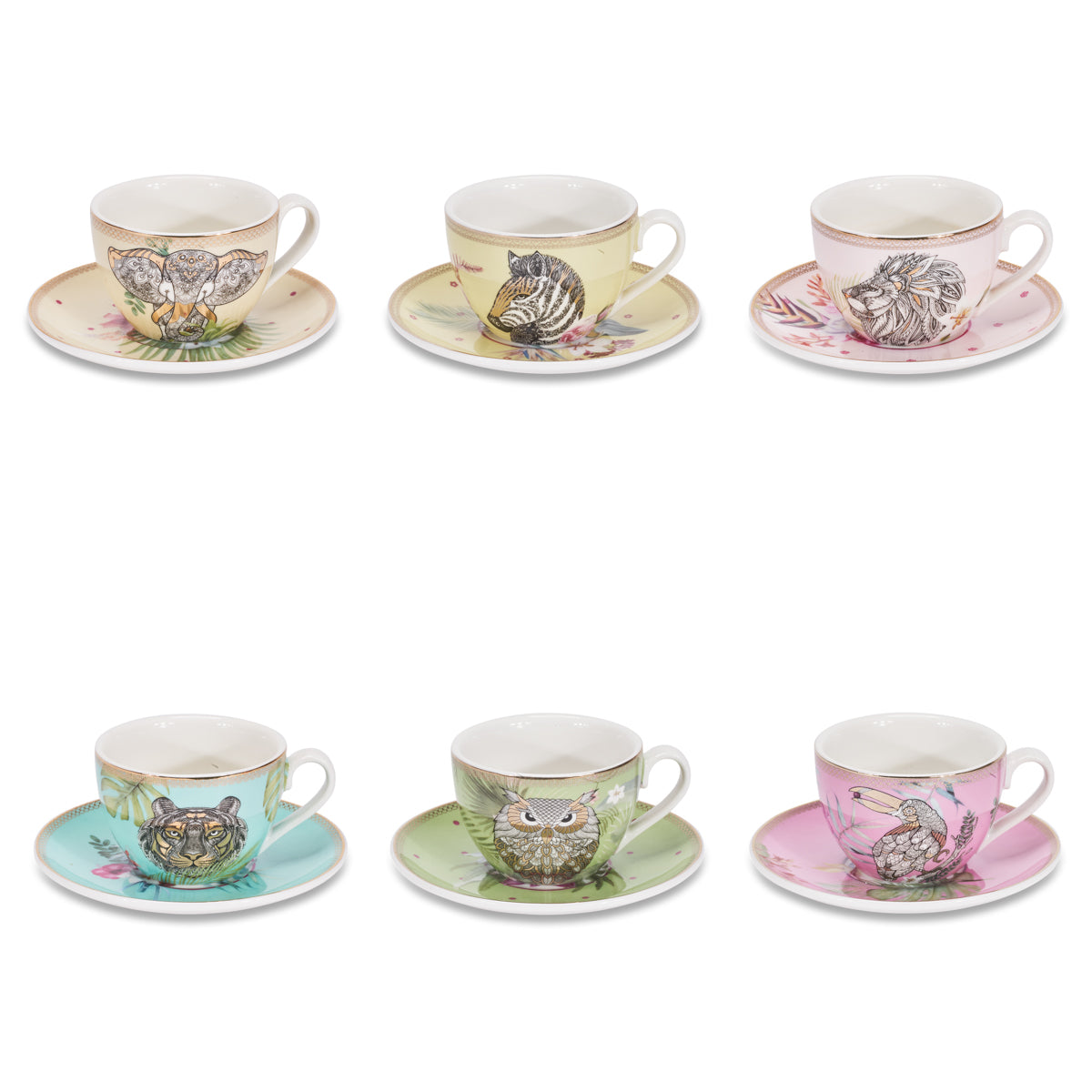 Scopri il nostro delizioso servizio da caffè con 6 tazzine in porcellana e relativi piattini, ognuno decorato con un affascinante disegno di animale diverso. Perfetto per chi ama aggiungere un tocco di fantasia e colore alla propria tavola, questo set animalier trasforma ogni pausa caffè in un momento speciale. Ideale come regalo originale o per completare la tua collezione di stoviglie con stile e personalità.