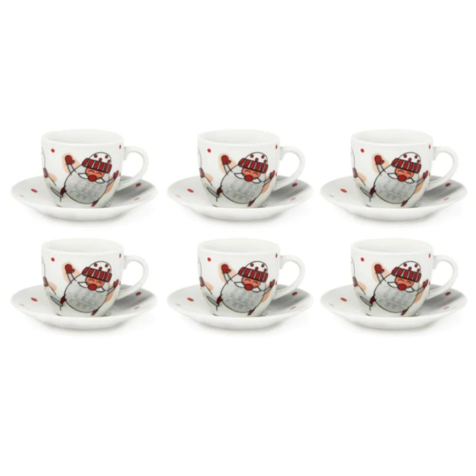 Perfetto per le festività! Questo delizioso servizio comprende 6 tazzine da caffè con relativi piattini in ceramica, ideali per sorprendere gli ospiti durante le cene natalizie. Ogni tazzina, dalla capacità di 90ml, è decorata con simpatici disegni di Babbo Natale e snowman che catturano lo spirito festivo. Realizzate in ceramica di qualità, sono perfette sia per il caffè che per altre bevande calde. Un regalo originale che porta allegria e calore sulla tavola durante le festività invernali.