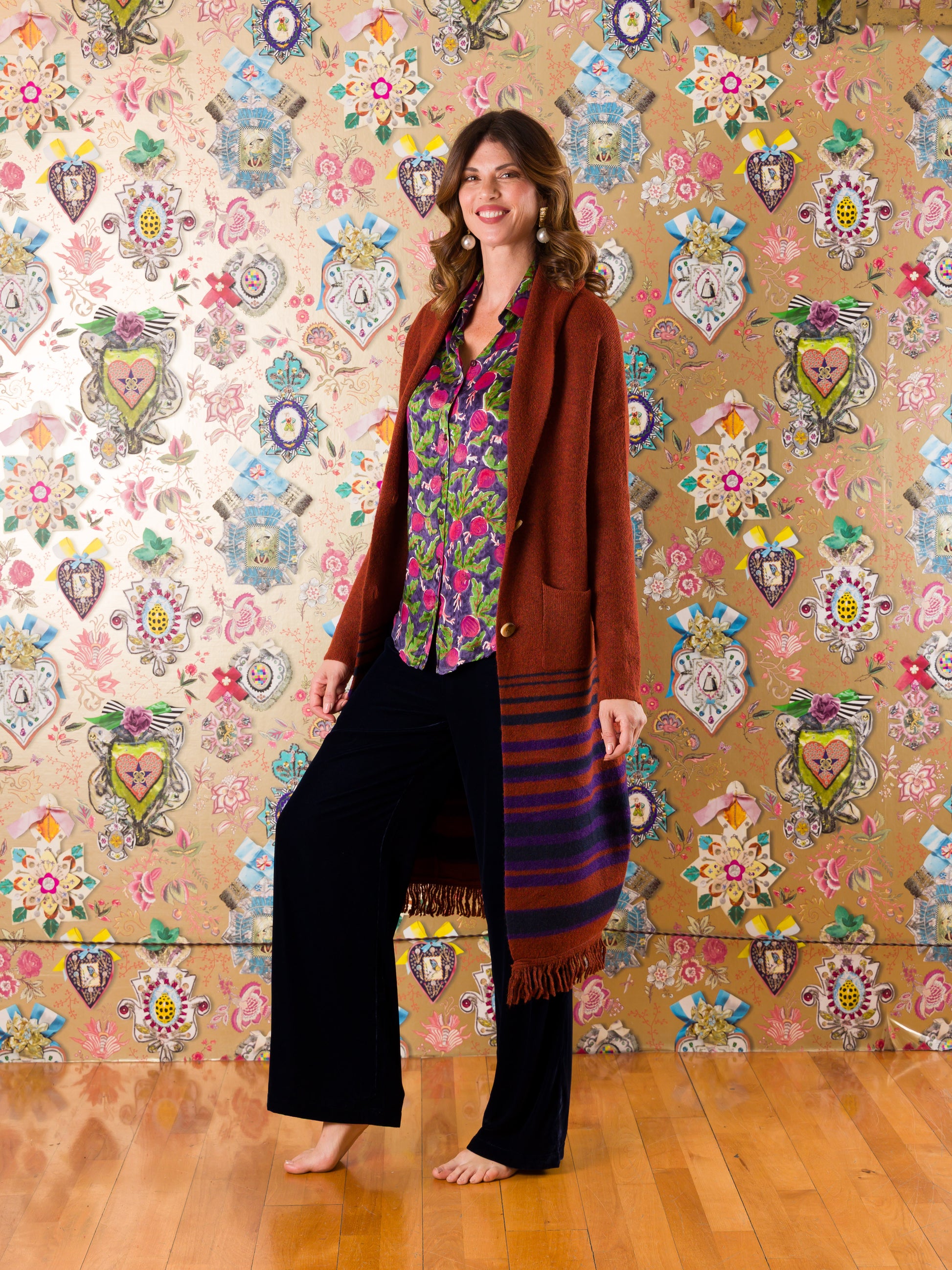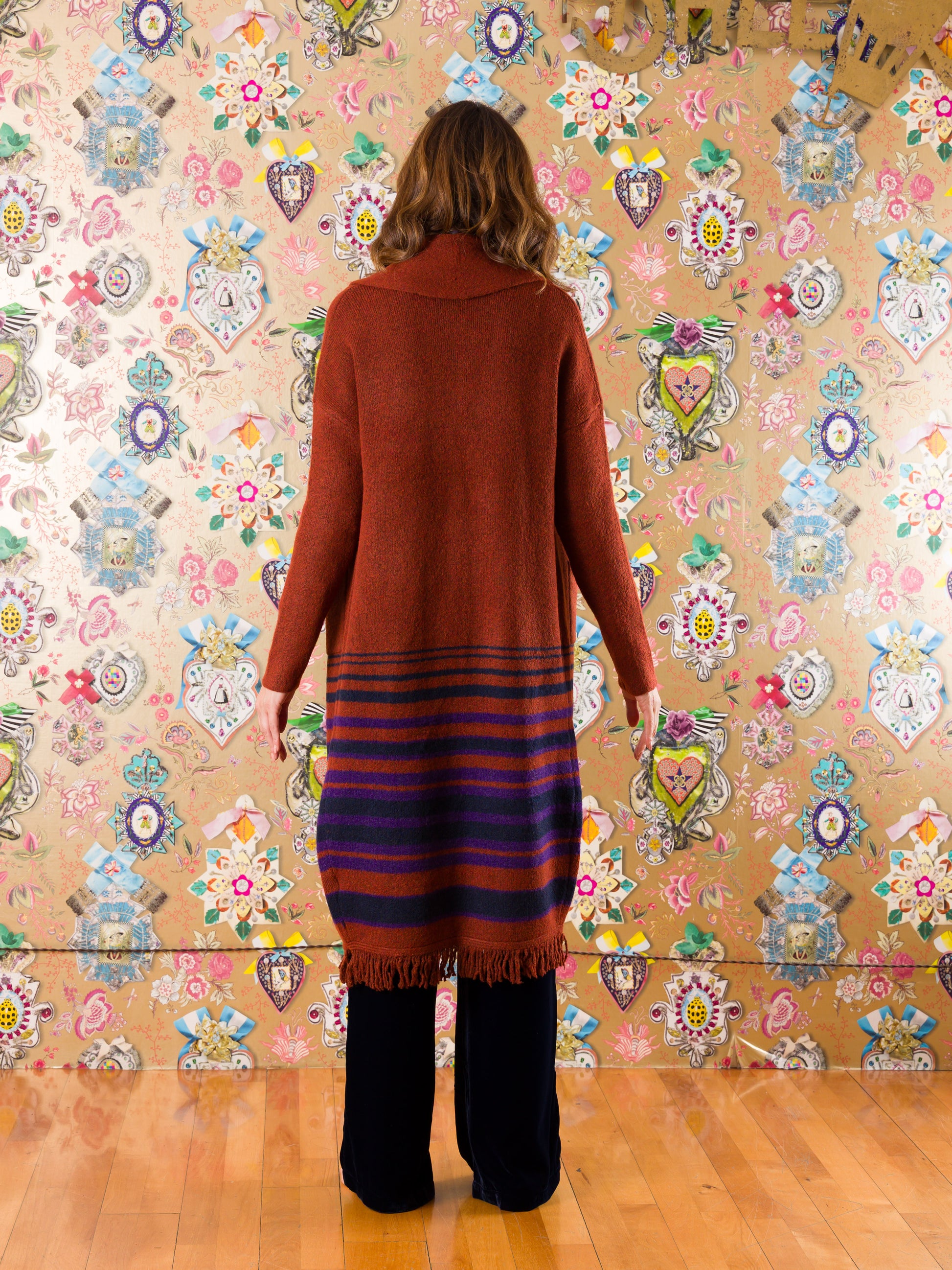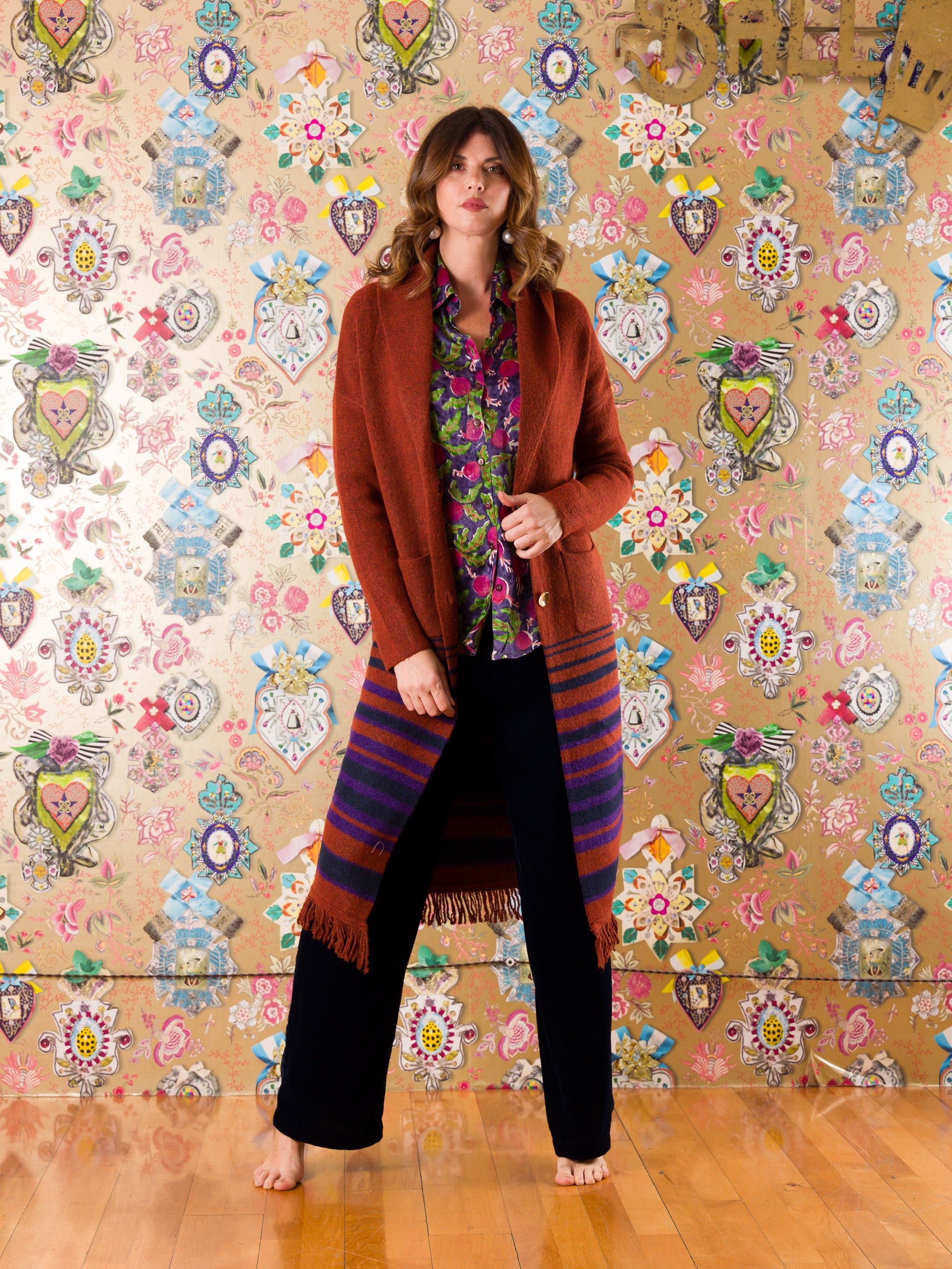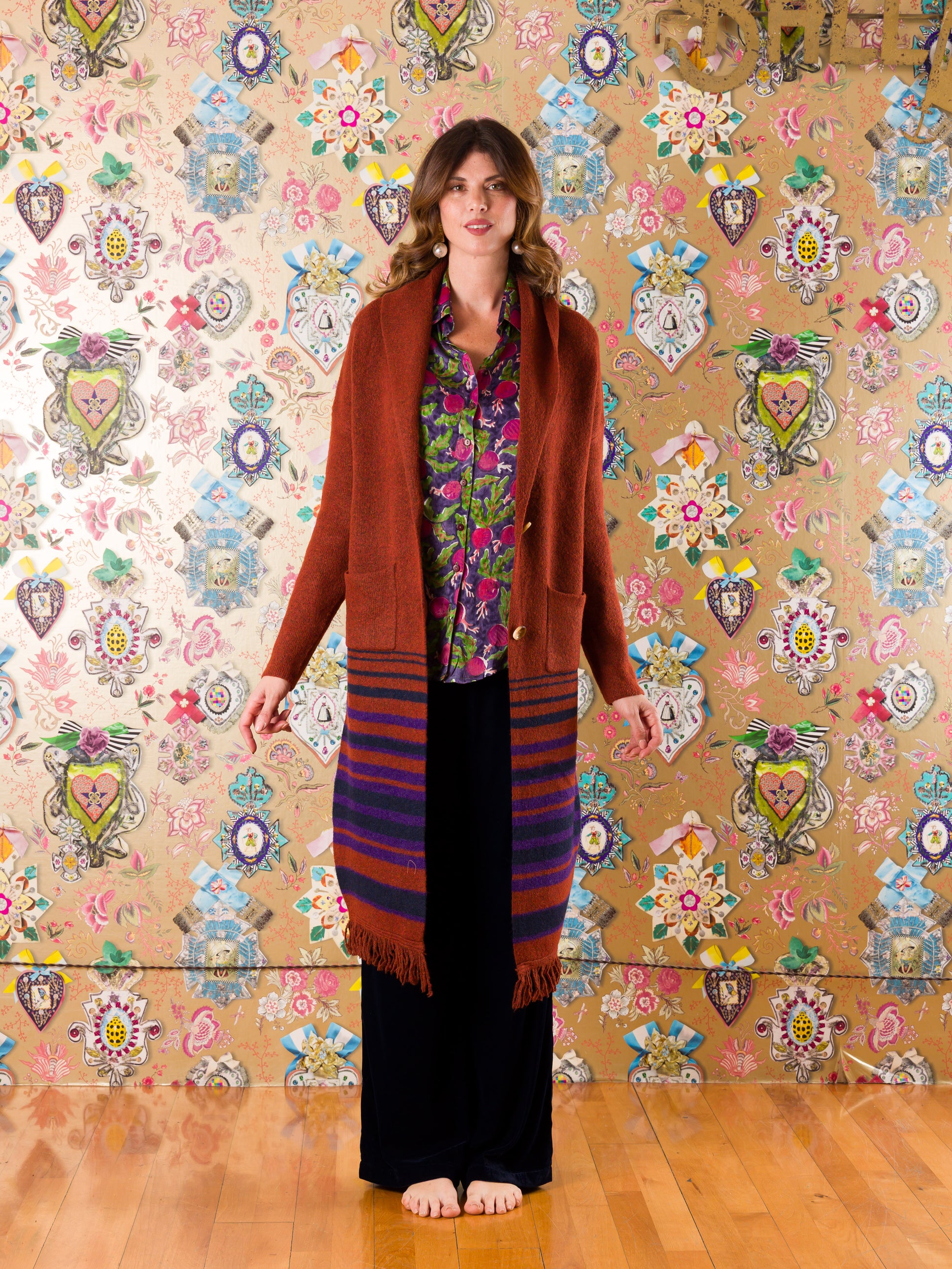 Questo spolverino Tarbes in maglia, lungo fino al ginocchio, è il capo perfetto per aggiungere un tocco di movimento al tuo outfit grazie alle frange sul fondo. Ideale per chi ama giocare con lo stile, unisce comfort e originalità in un unico pezzo facile da abbinare. Leggero e versatile, è perfetto per regalarti un look dinamico e unico in ogni occasione.